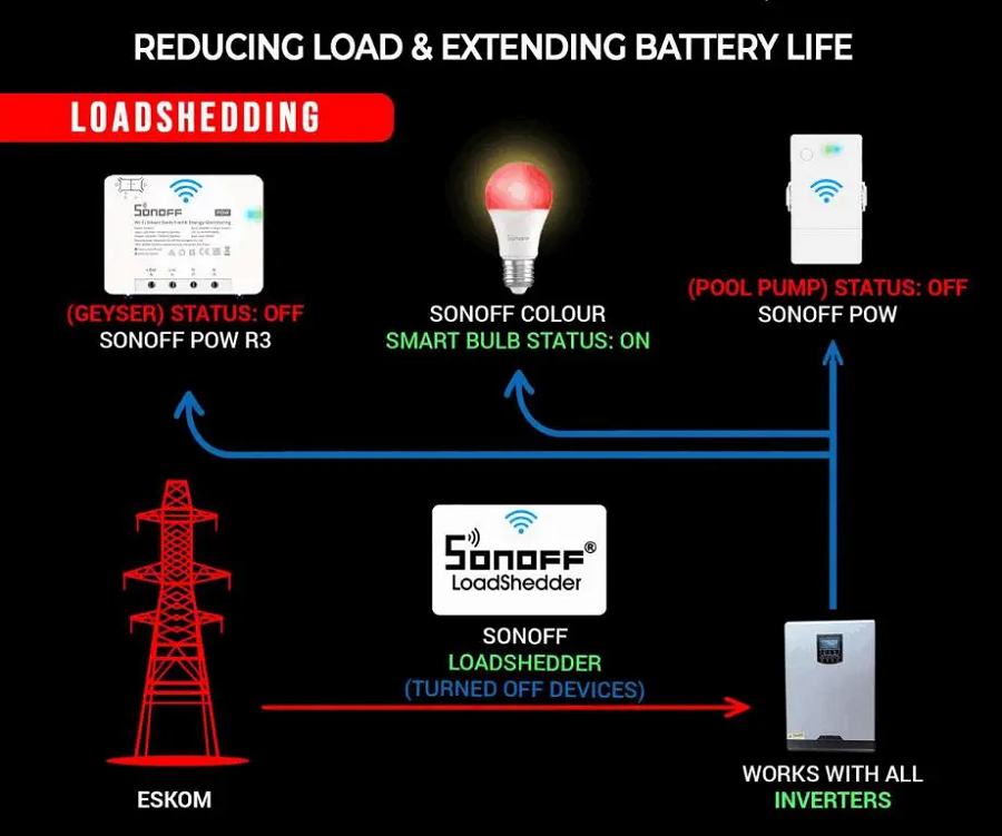 - The final piece of the smart home system that monitors Eskom power feed and manages your inverter load all in eWelink.